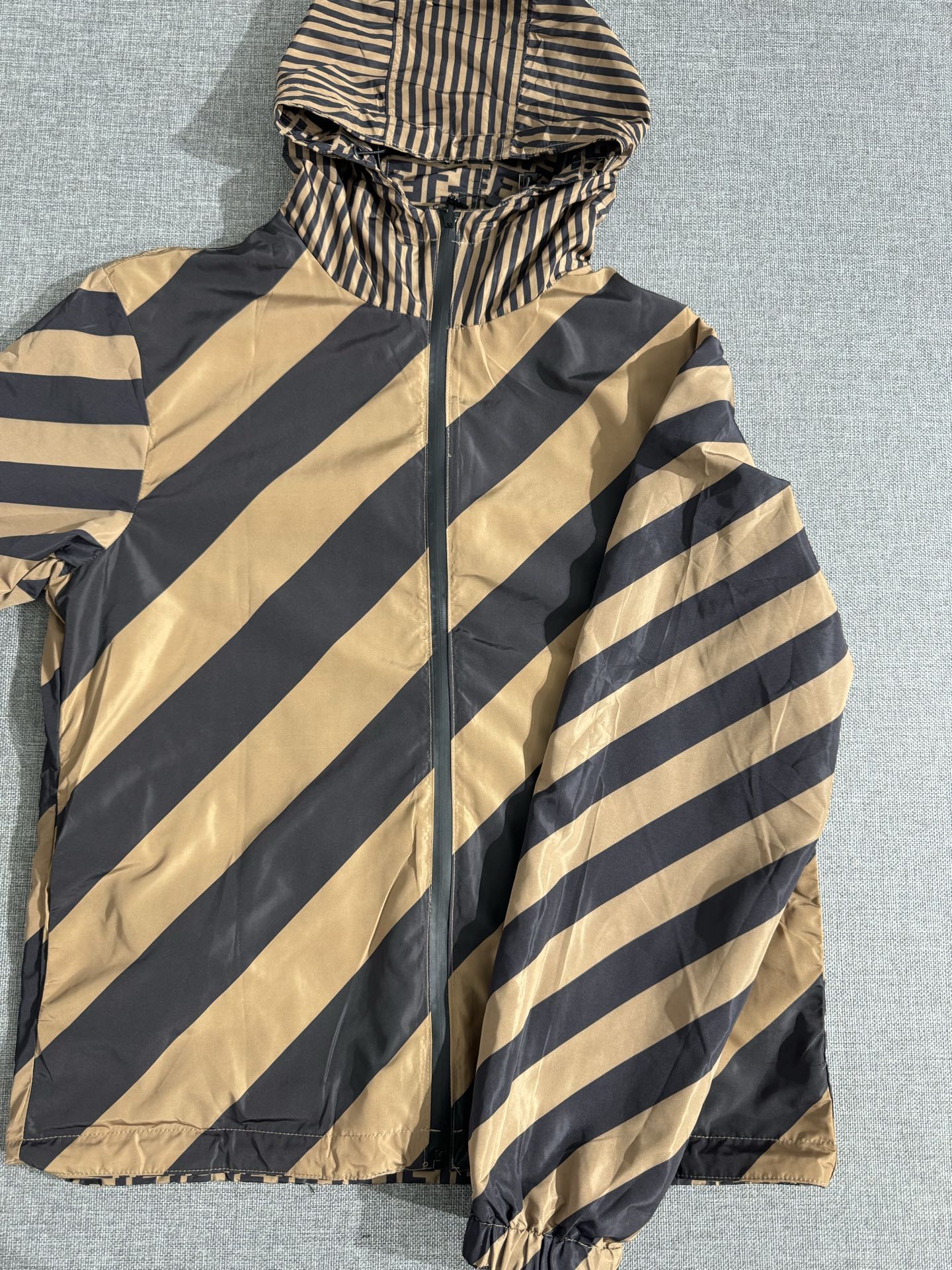 This striped cotton-padded jacket is a stylish and functional outerwear piece for both men and women. Crafted with meticulous attention to detail, it offers warmth, comfort, and a unique design.