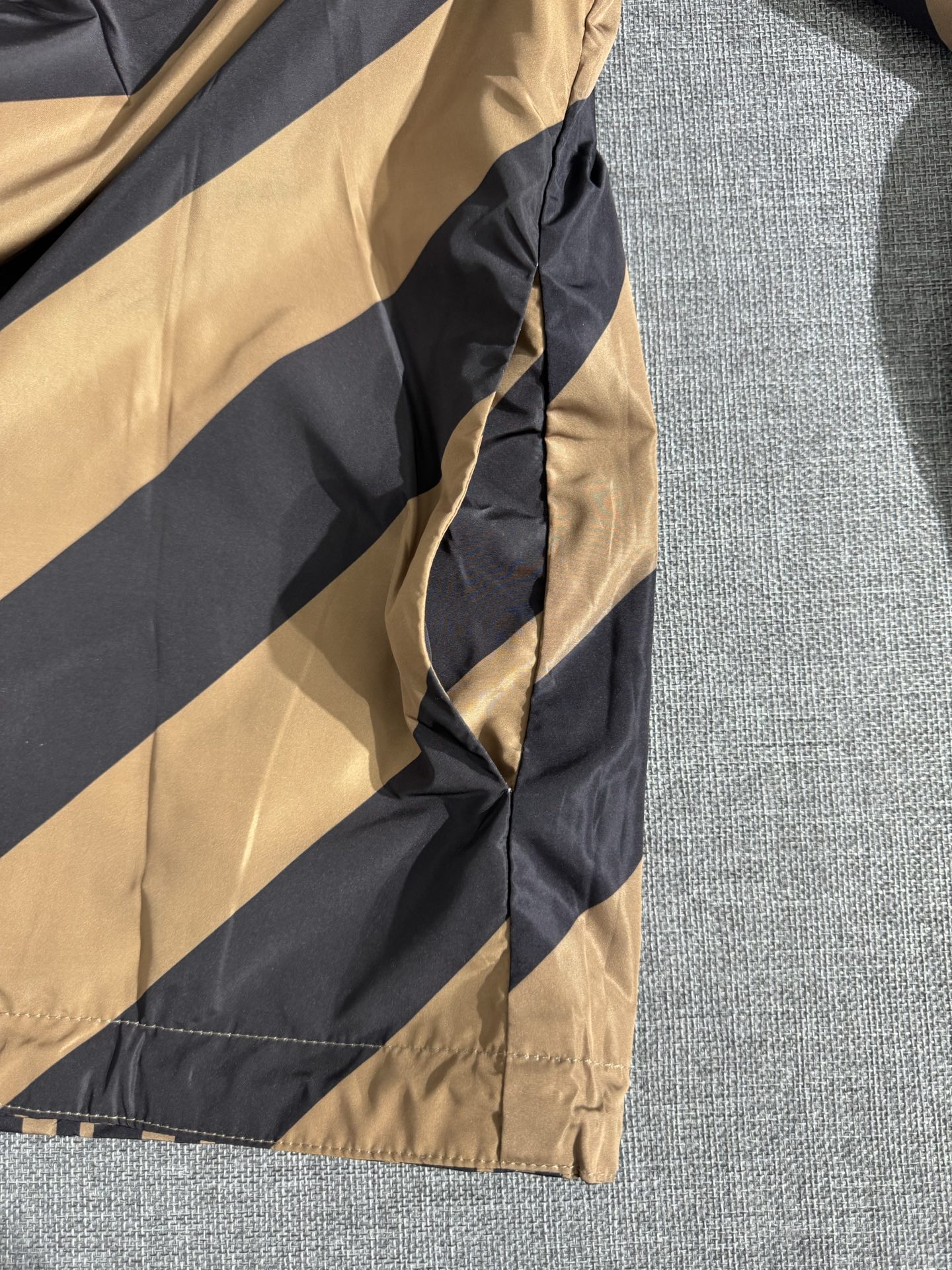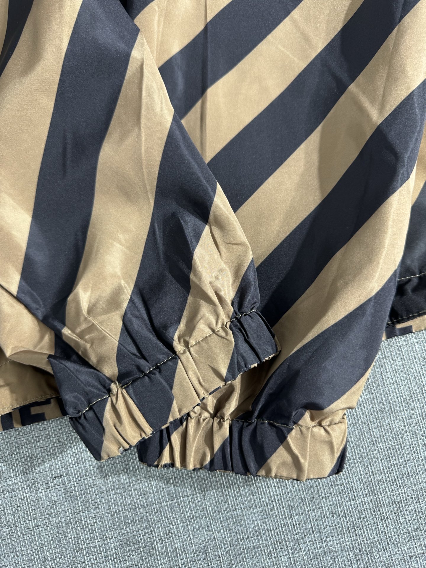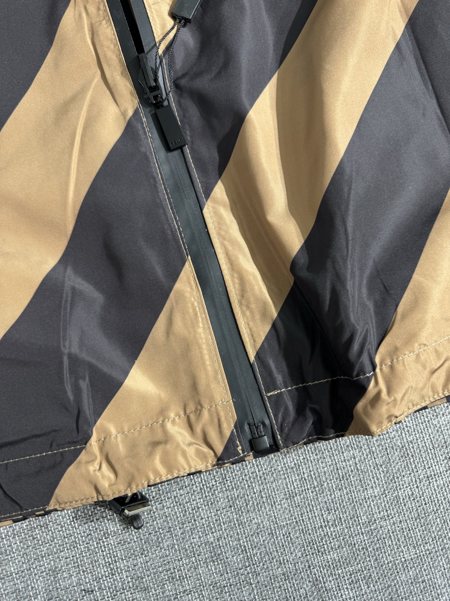 Tags: Designer Cotton Jacket, Loose Fit Unisex Jacket, Luxury Outerwear, Nylon Twill Jacket, Striped Cotton Padded Jacket