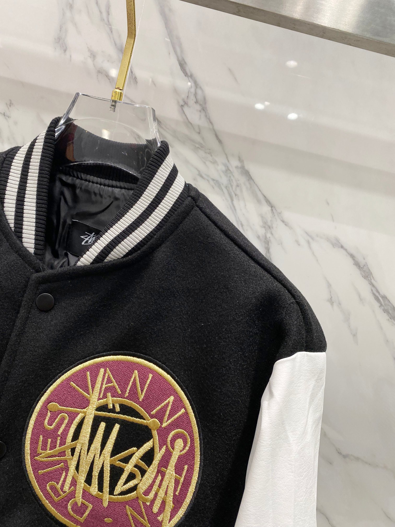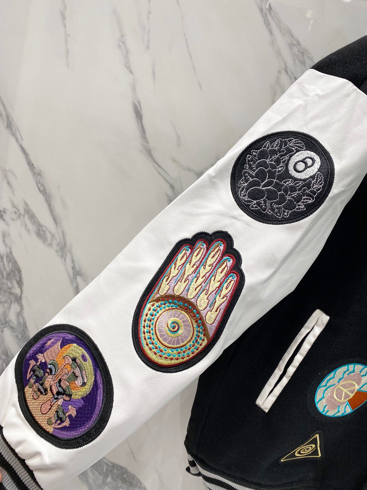 Tags: Designer Varsity Jacket, Dries Van Noten Jacket, Embroidered Varsity Jacket, Leather Sleeve Jacket, Stussy Dries Van Noten, Stussy Varsity Jacket