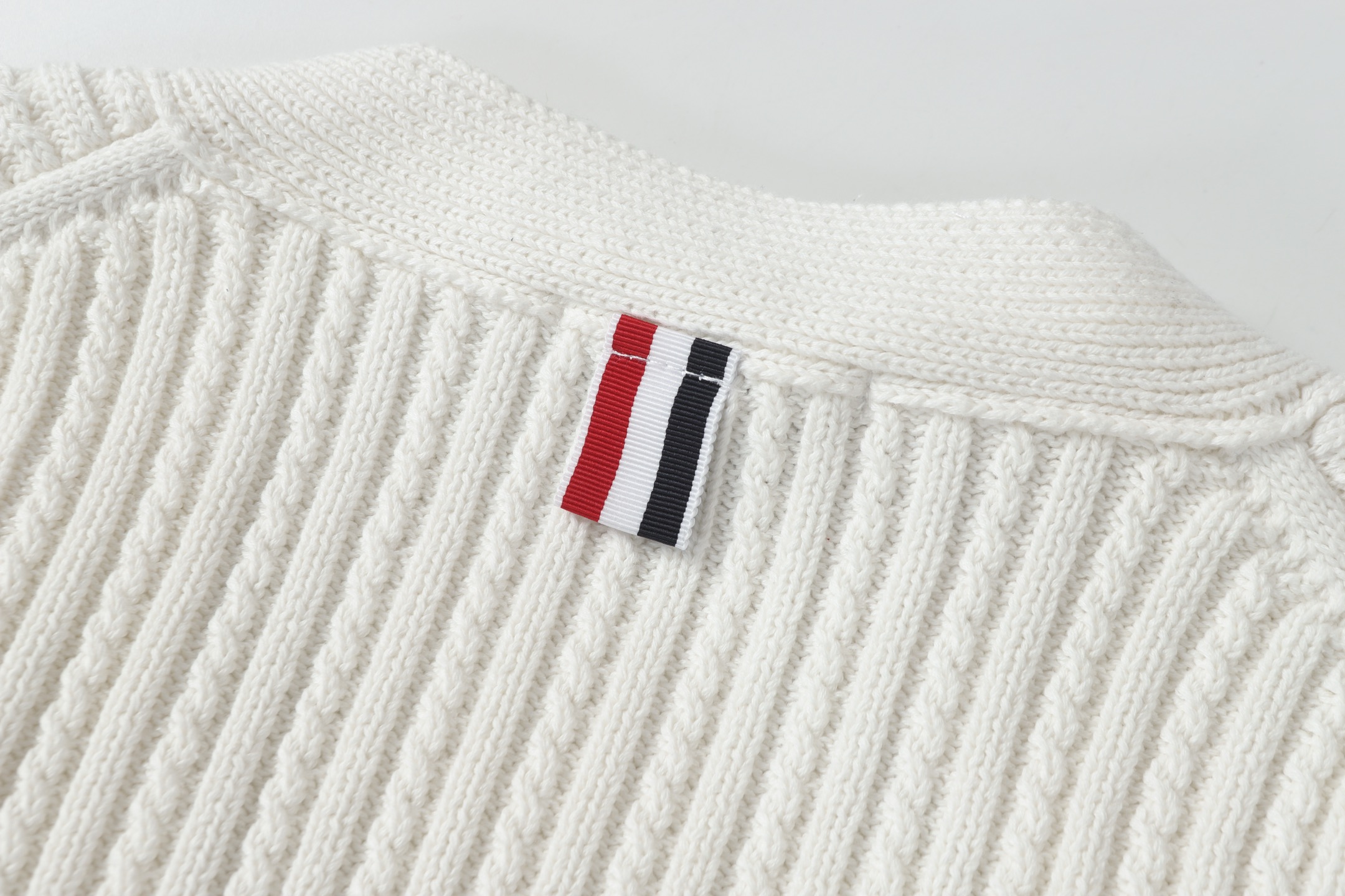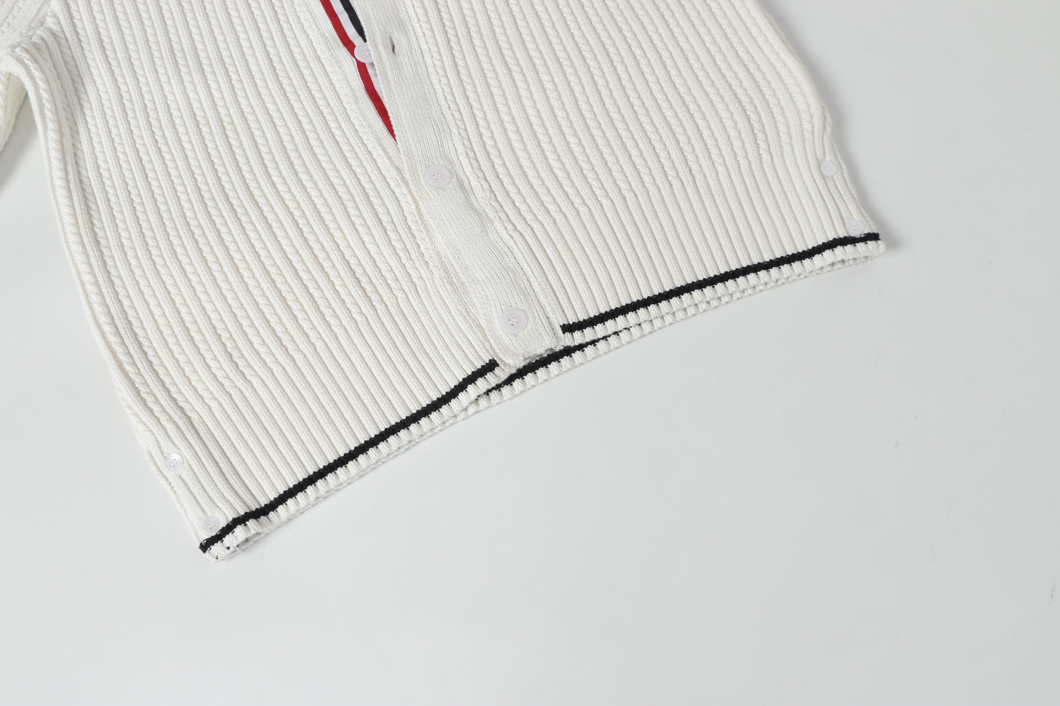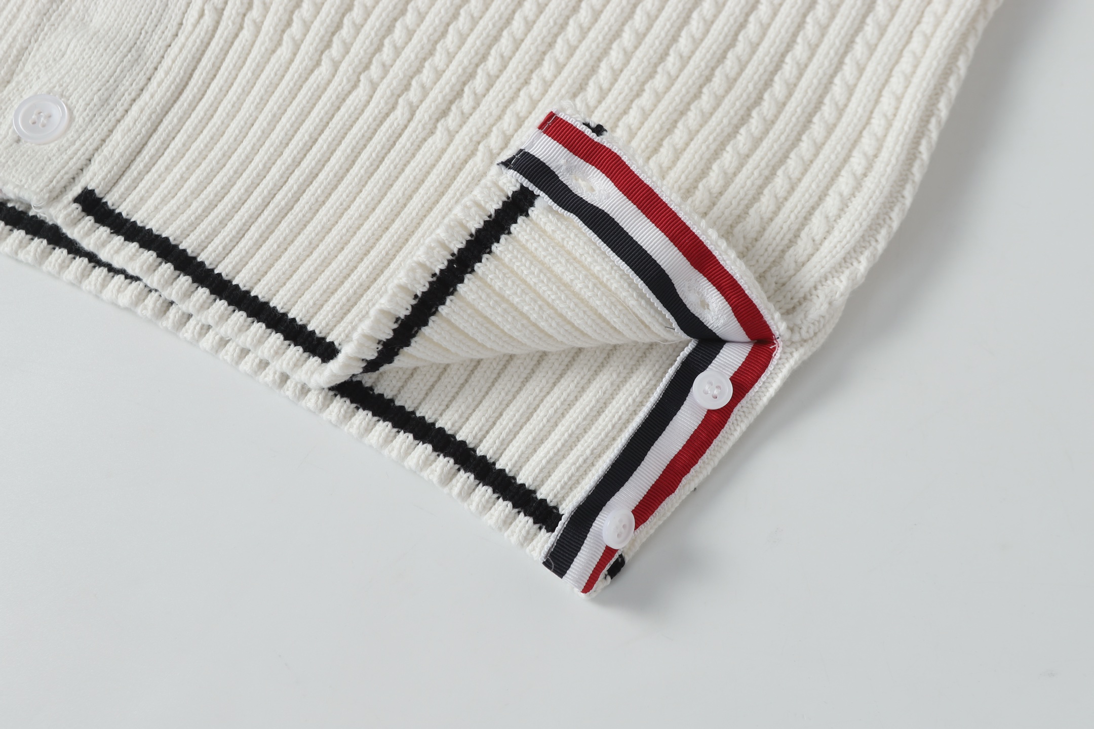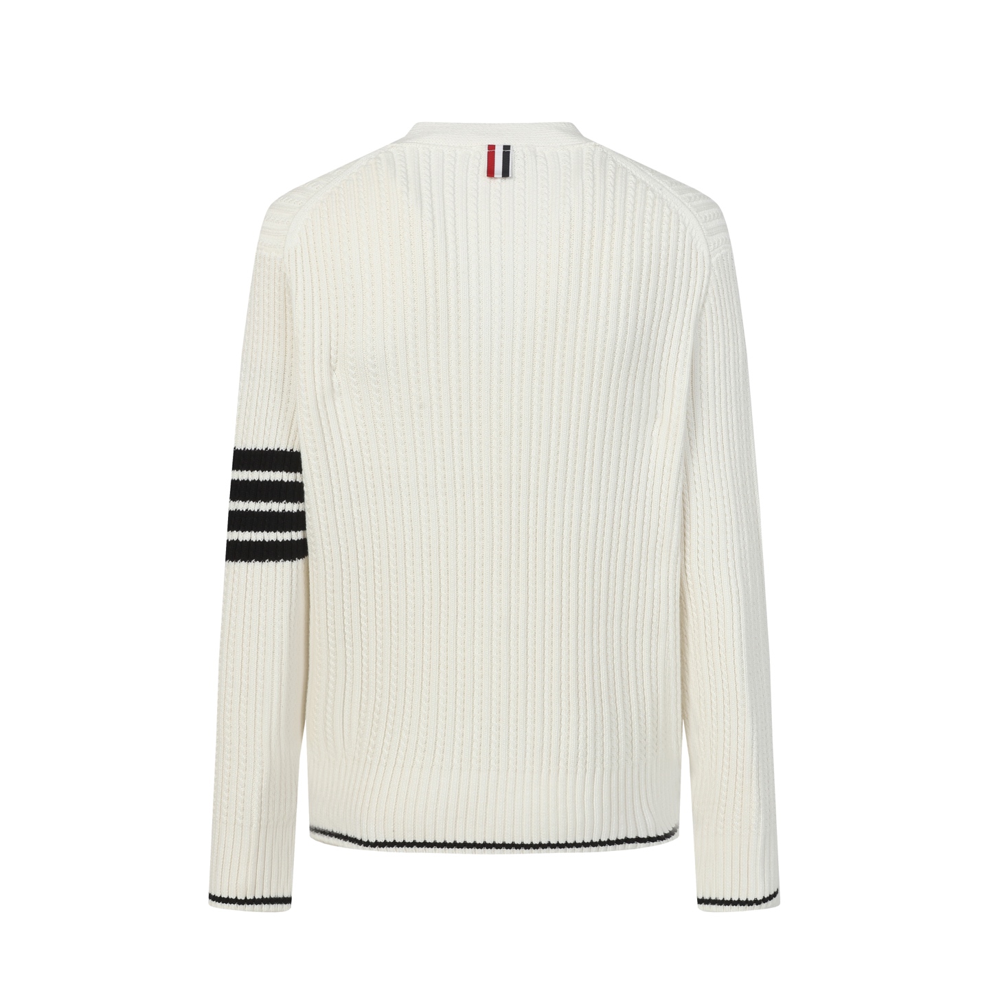 This Thom Browne cardigan is an investment piece that brings both luxury and classic design, suitable for diverse occasions and styles.
