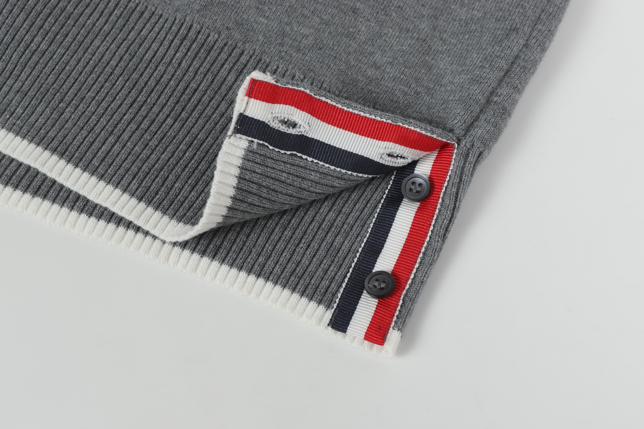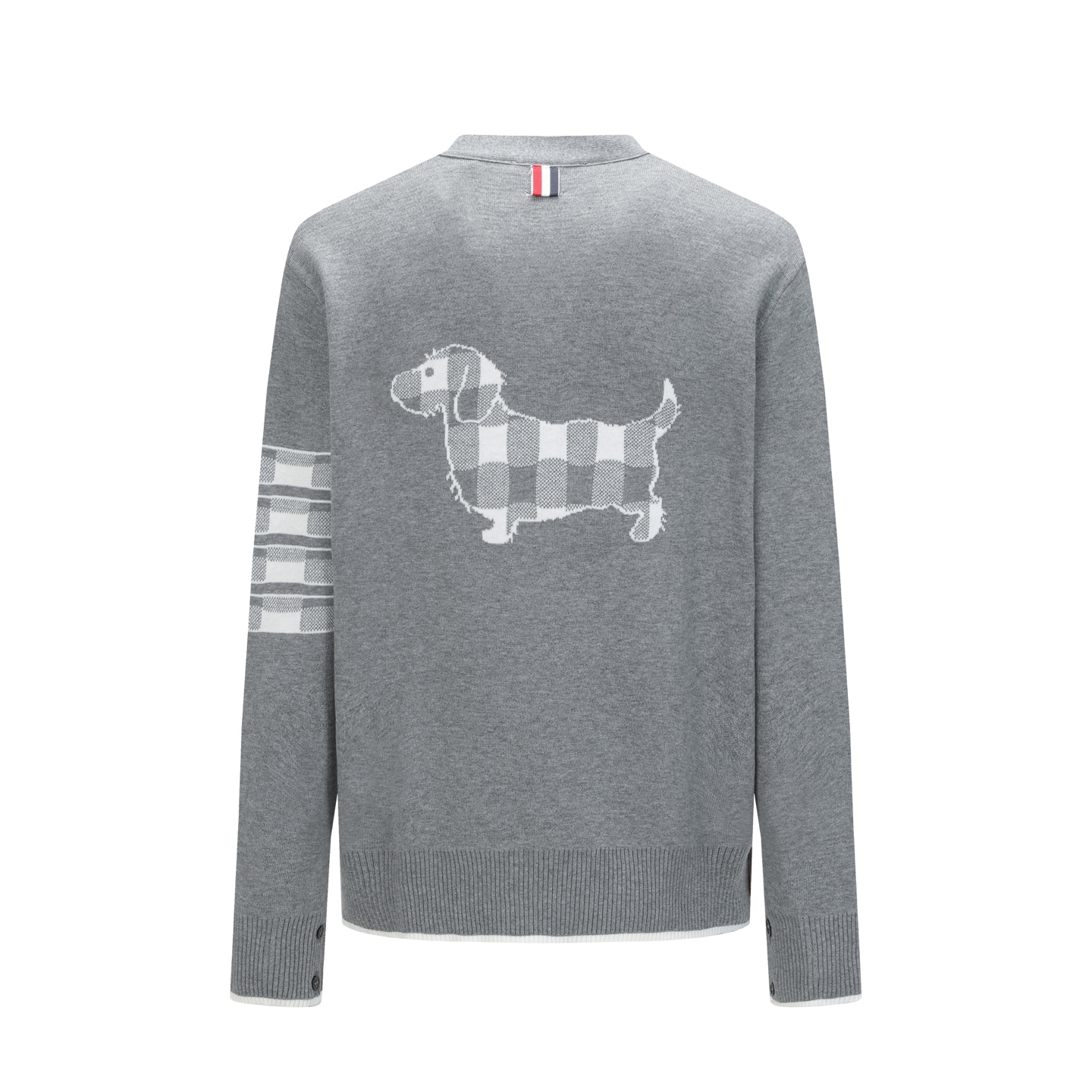 - Four-bar stripe detail on the sleeve, a signature Thom Browne element