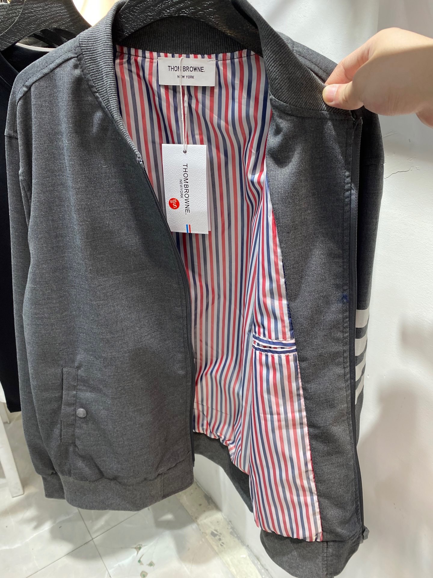 This Thom Browne bomber jacket is a versatile piece that can be dressed up or down, making it a must-have addition to any wardrobe. Its classic design and high-quality construction ensure that it will be a staple for years to come.
