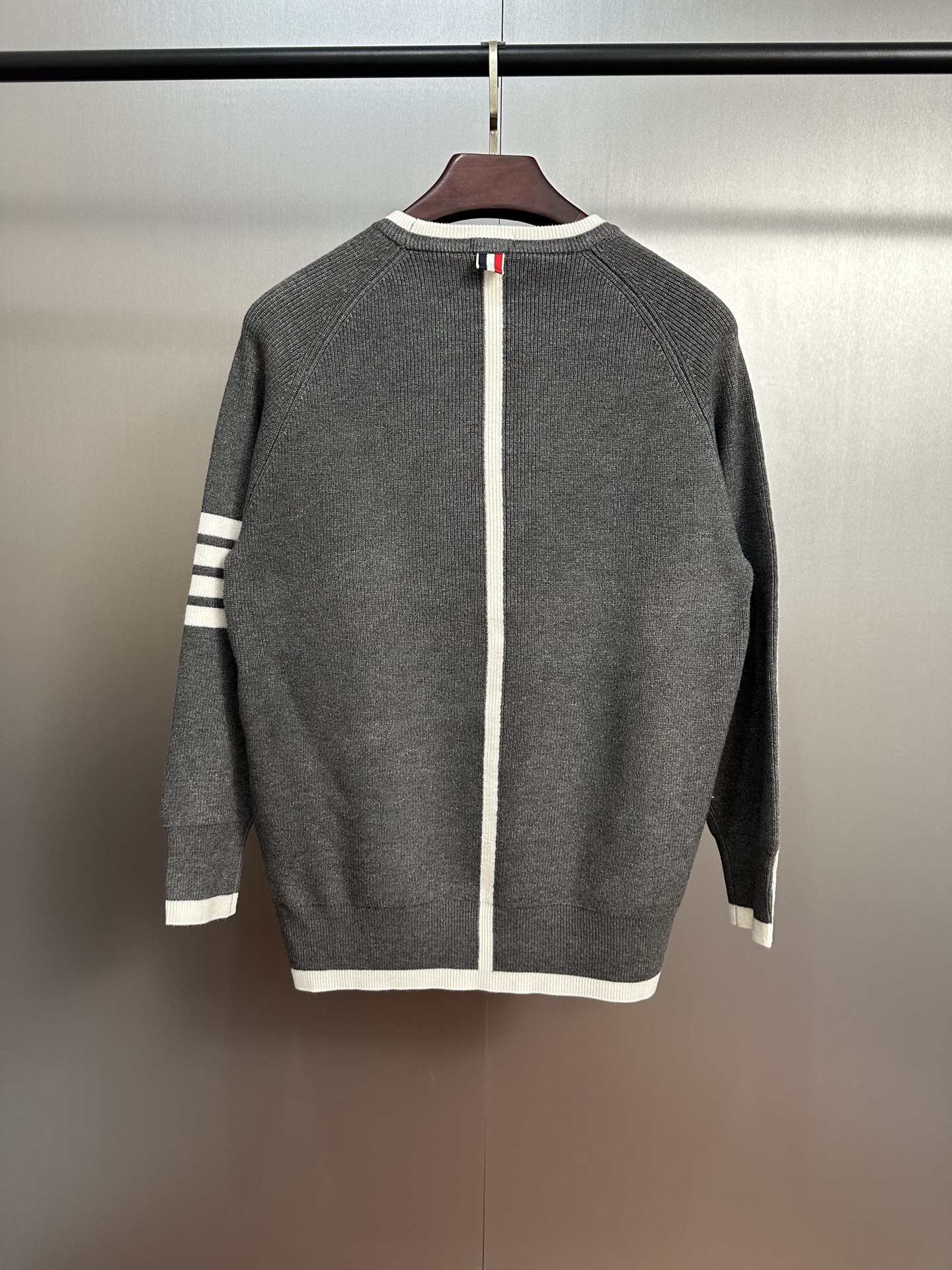 Thom Browne Grey Striped Knit Sweater | Versatile & Stylish M-4XL