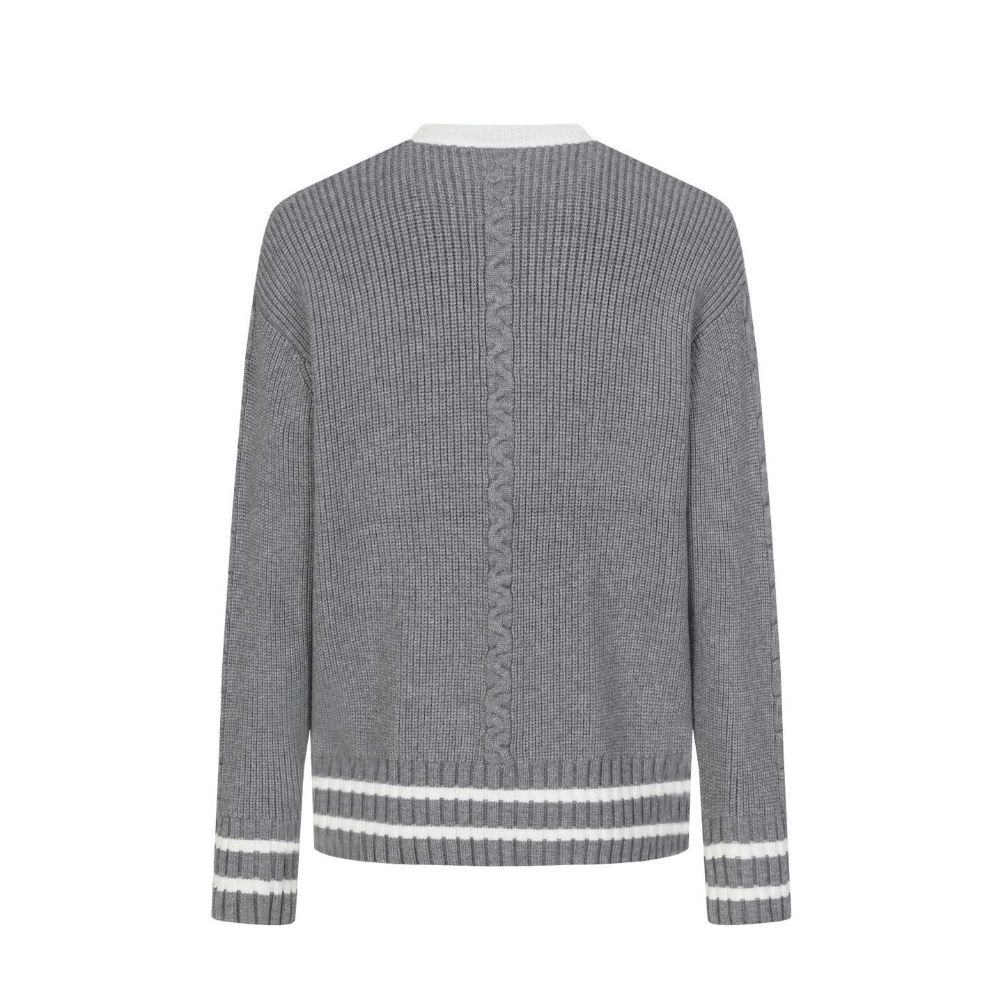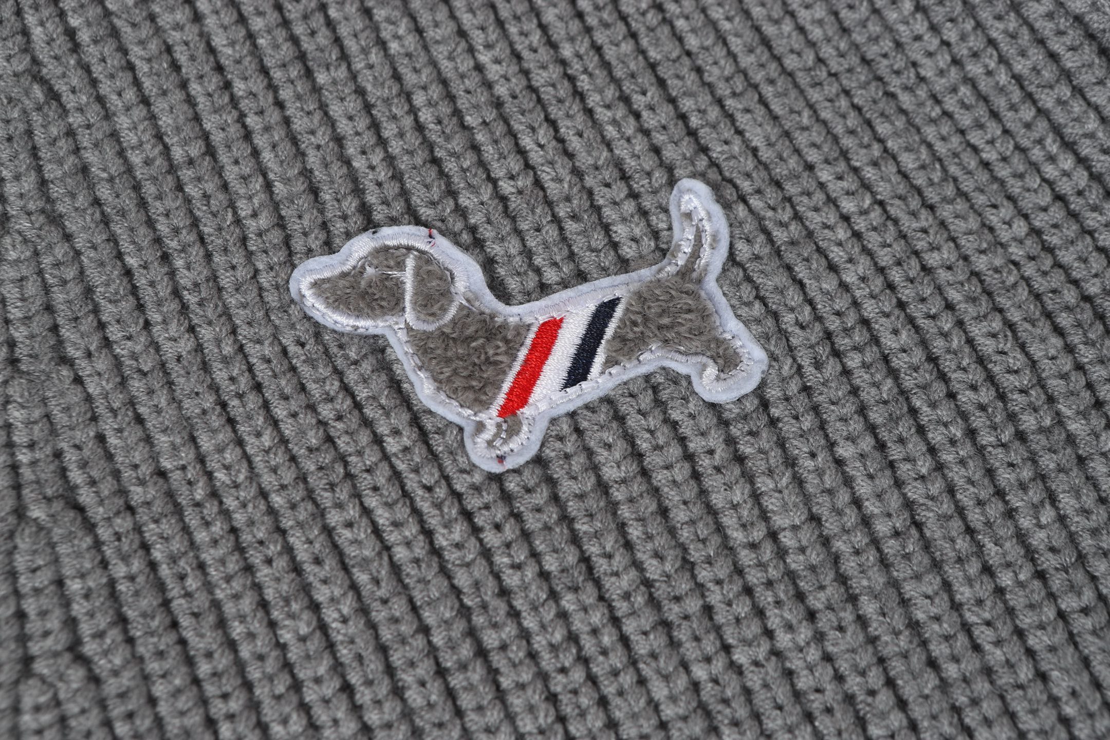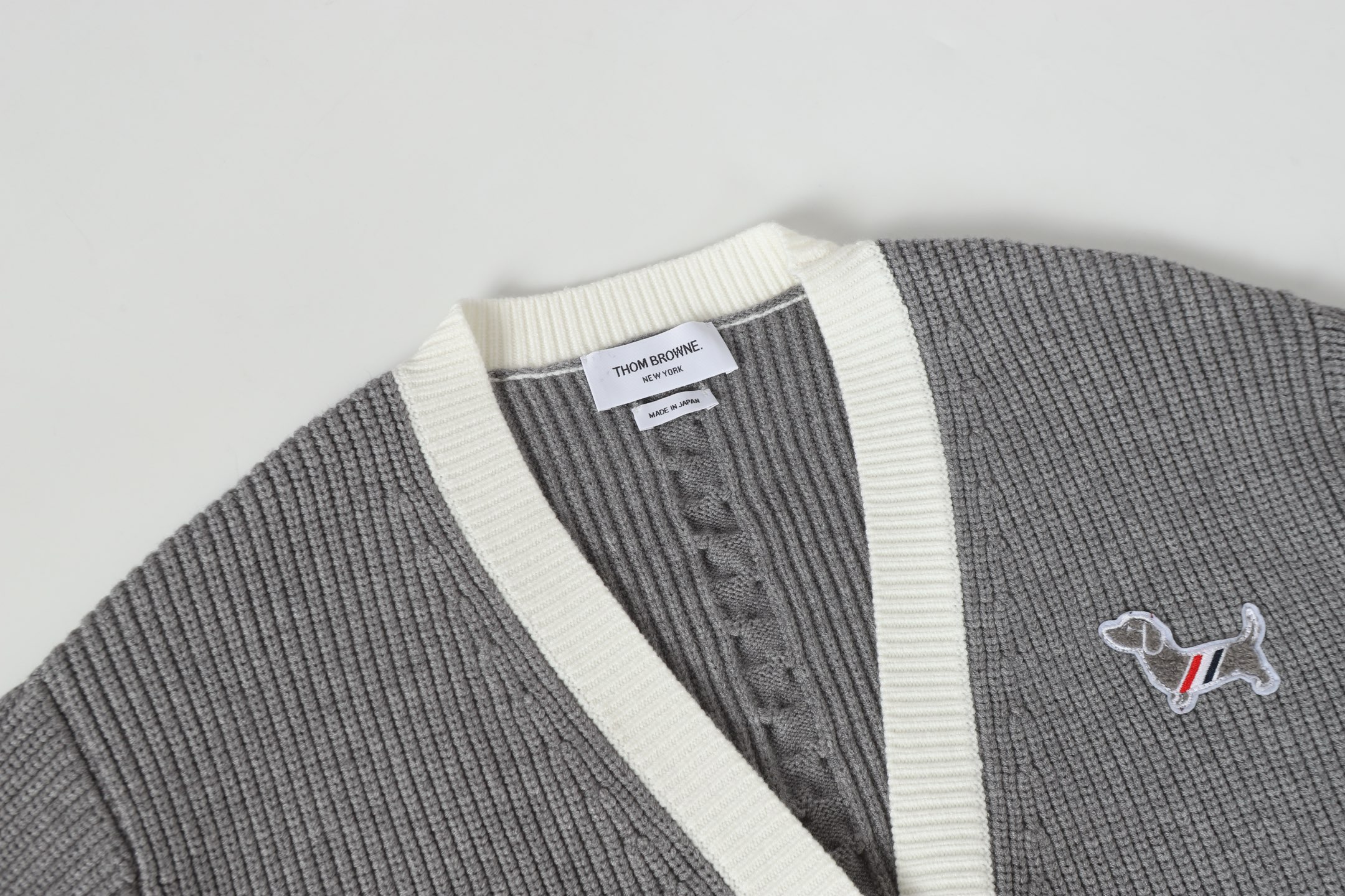 Tags: Designer Cardigan, Grey Cardigan Women, Hector Dog Embroidery, Long Sleeve Cardigan, Thom Browne Cardigan, V Neck Knitwear