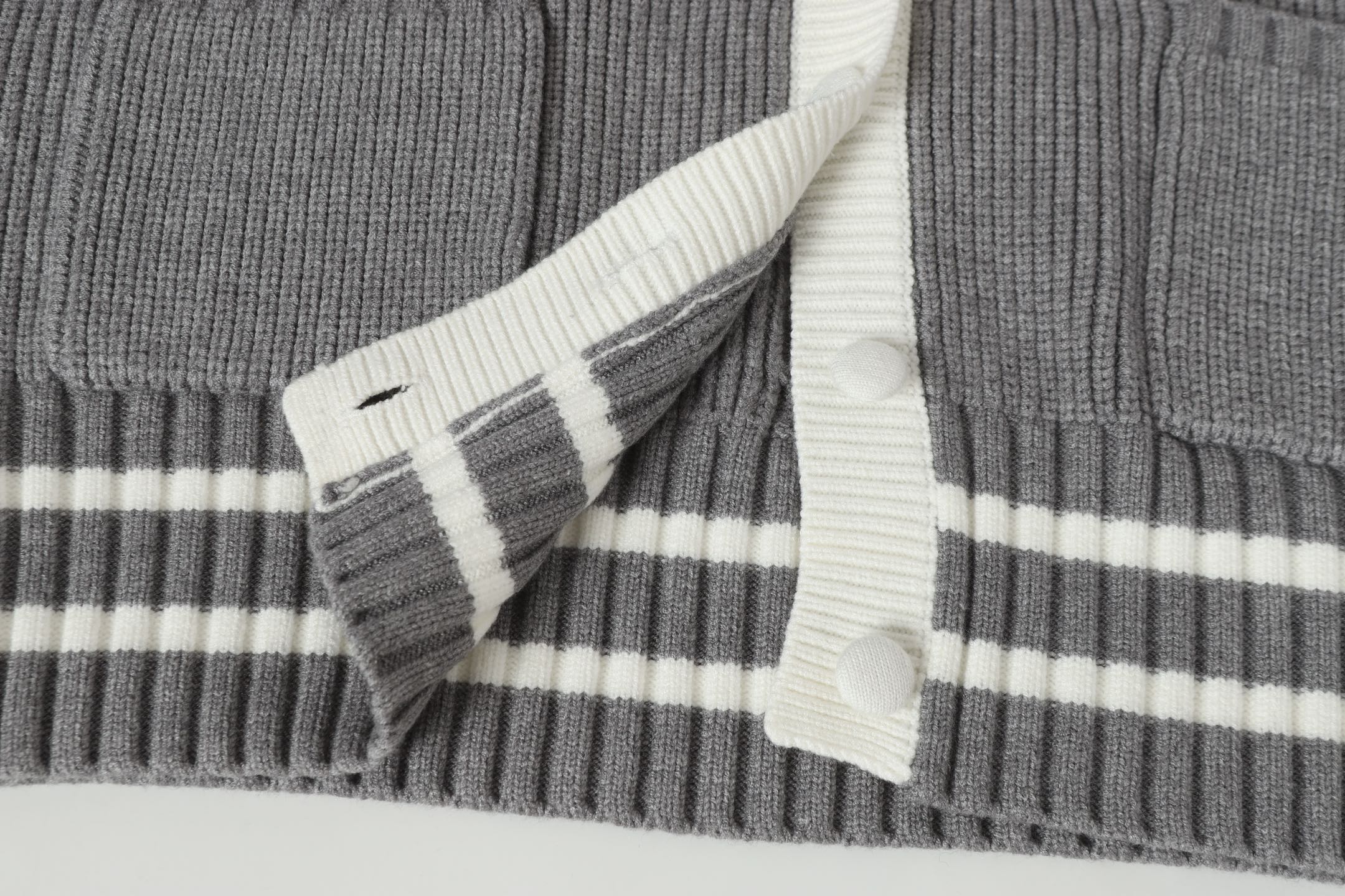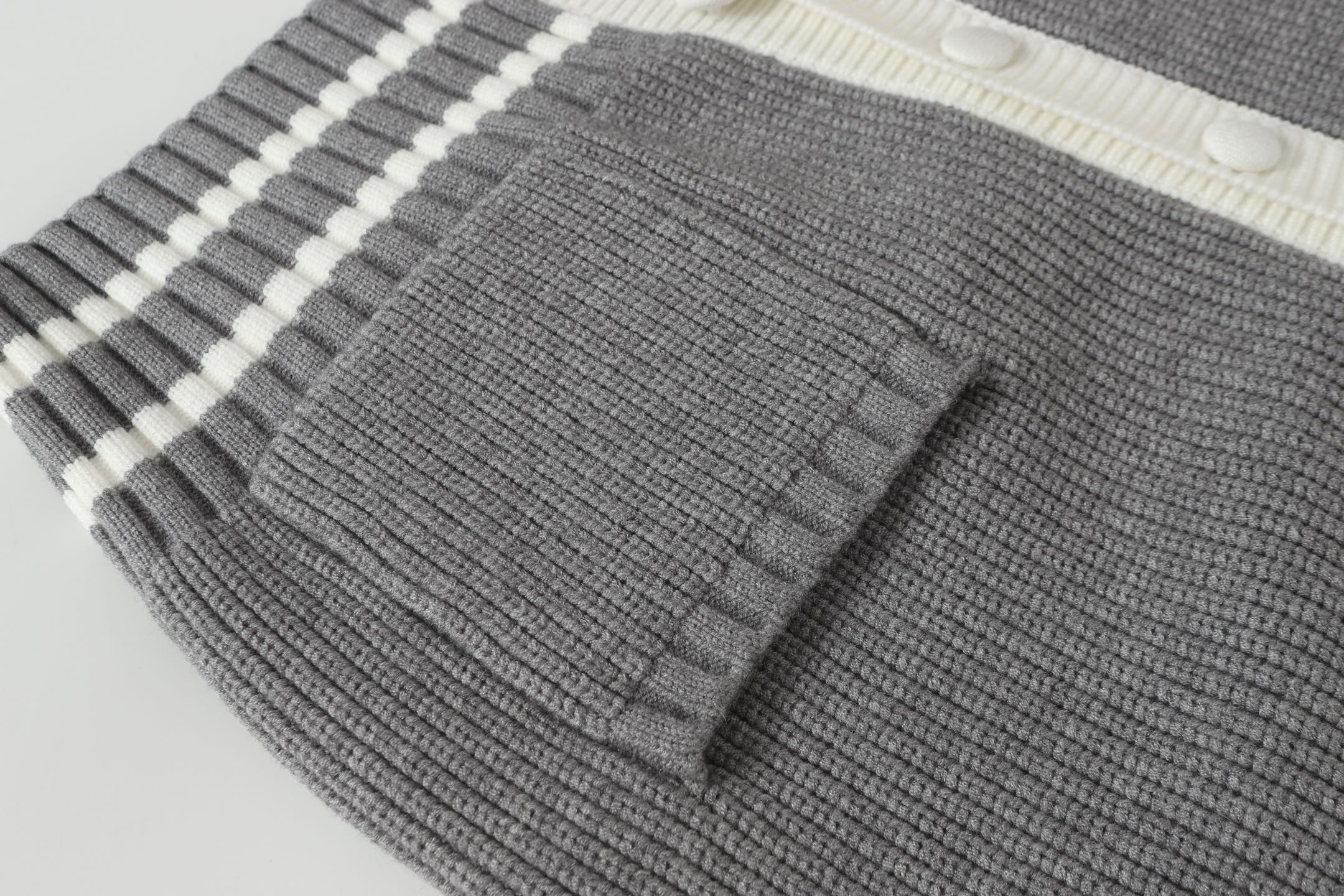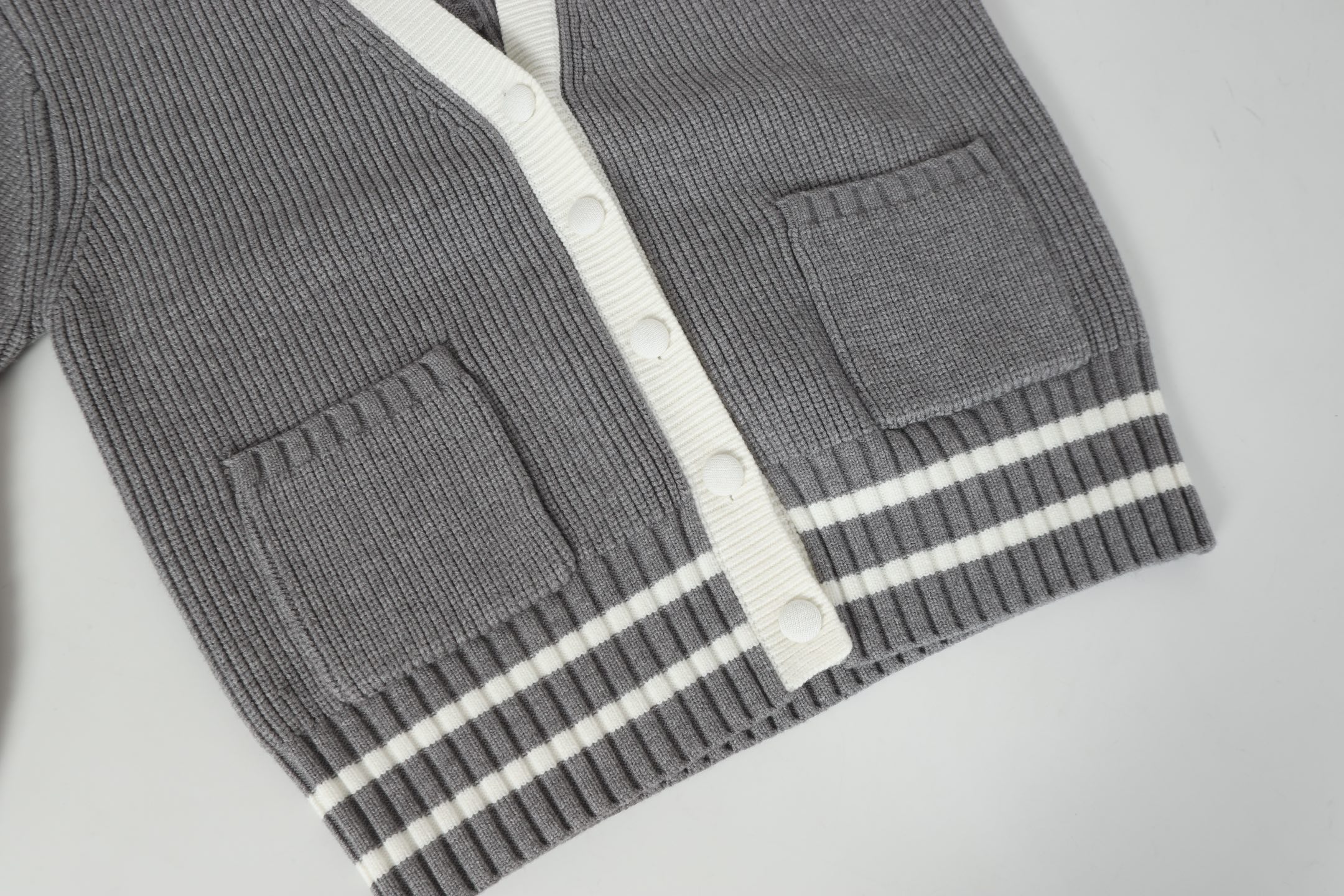 This Thom Browne cardigan is a luxurious addition to any wardrobe, perfect for adding a touch of elegance to both casual and formal outfits.