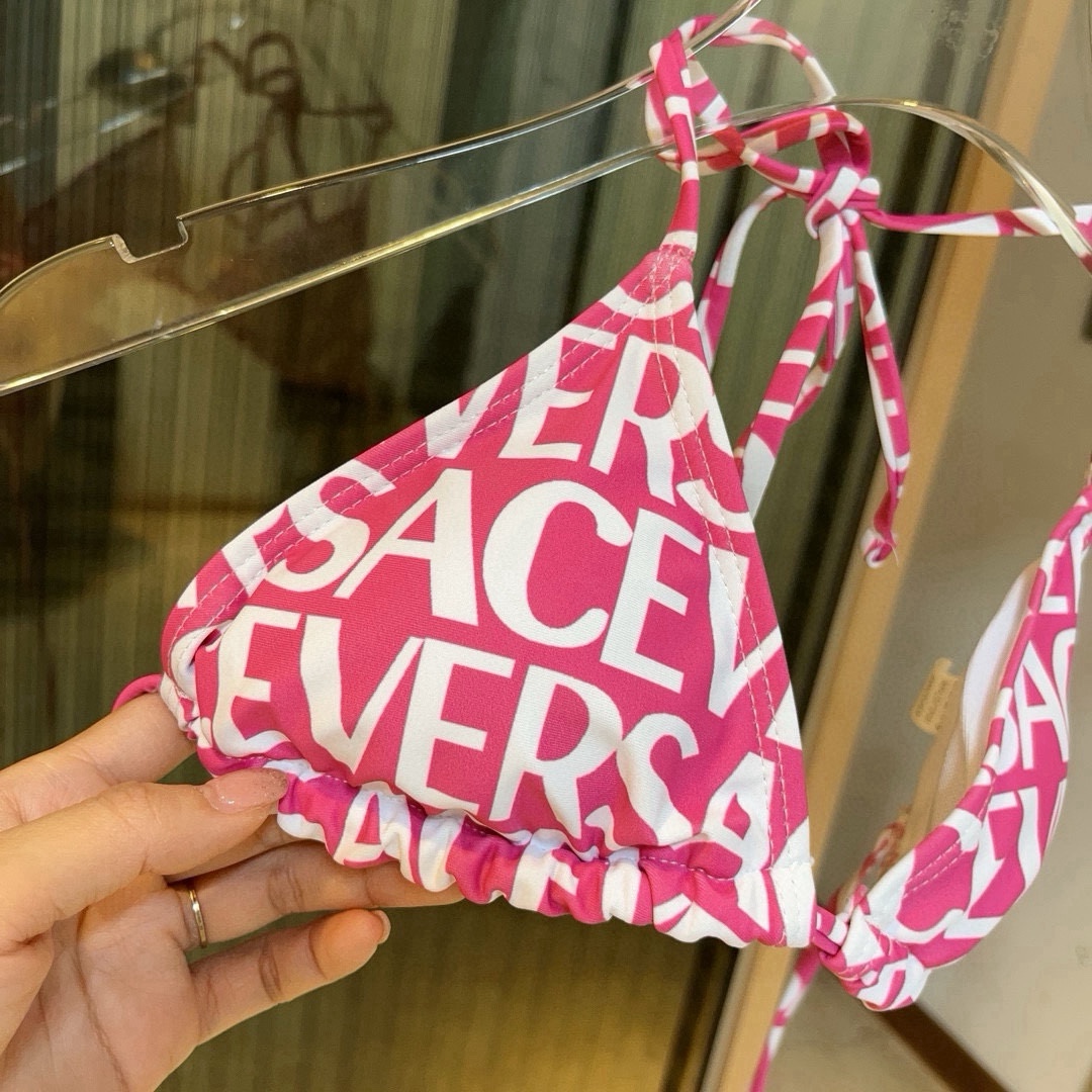 Tags: Designer Swimsuit, Logo Print Bikini, Pink Versace Swimwear, Summer Swimwear, Versace Bikini, Women's Swimsuit