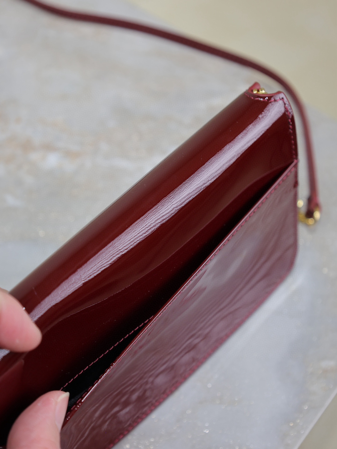 I love this little bag! It's perfect for when I don't want to carry a big purse. The red patent leather is so chic, and it fits my phone perfectly.