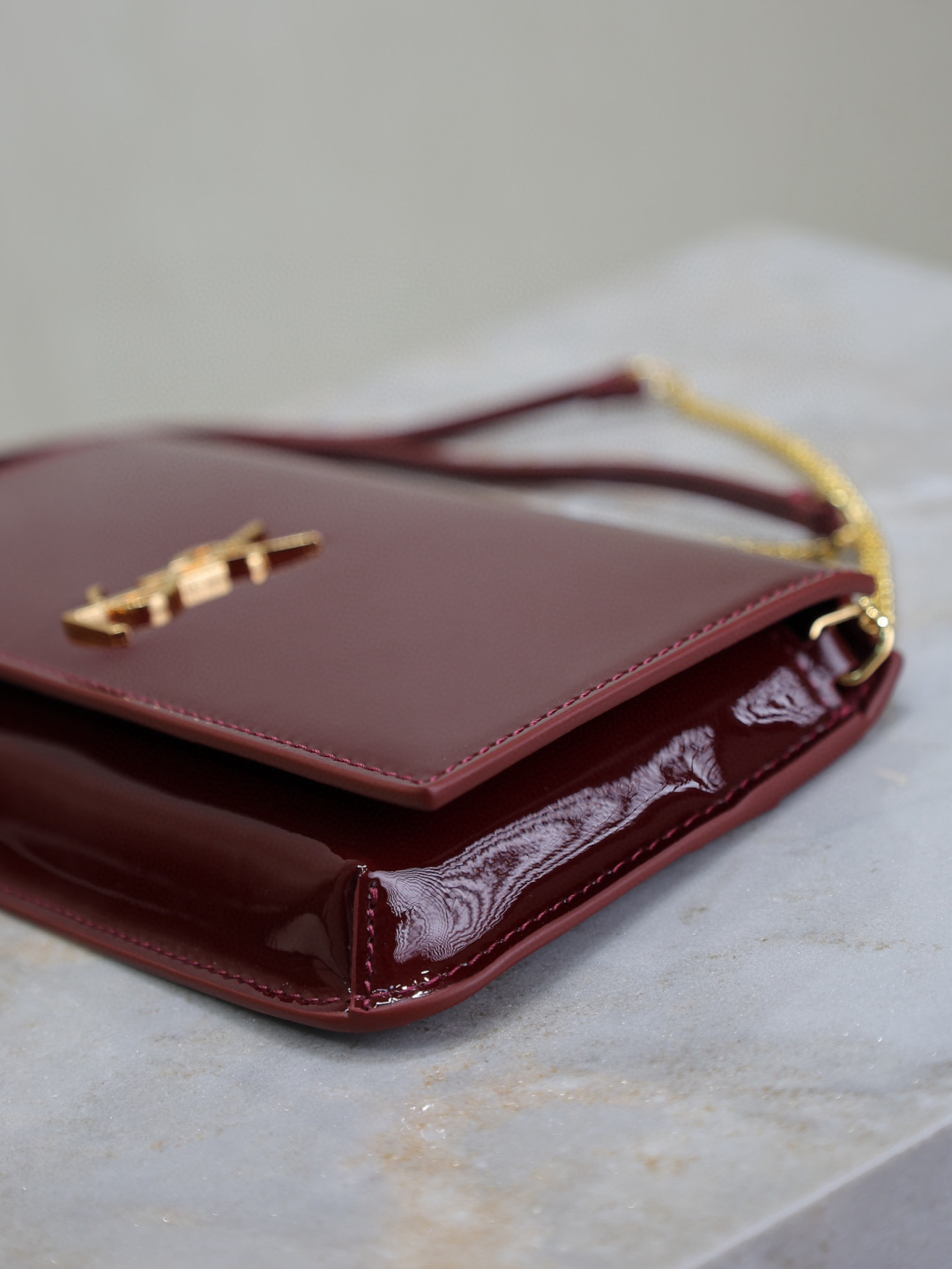 Tags: Compact Phone Bag, Designer Crossbody Bag, Mini Phone Holder Bag, Red Patent Leather Bag, Small Chain Bag, Yves Saint Laurent Bag