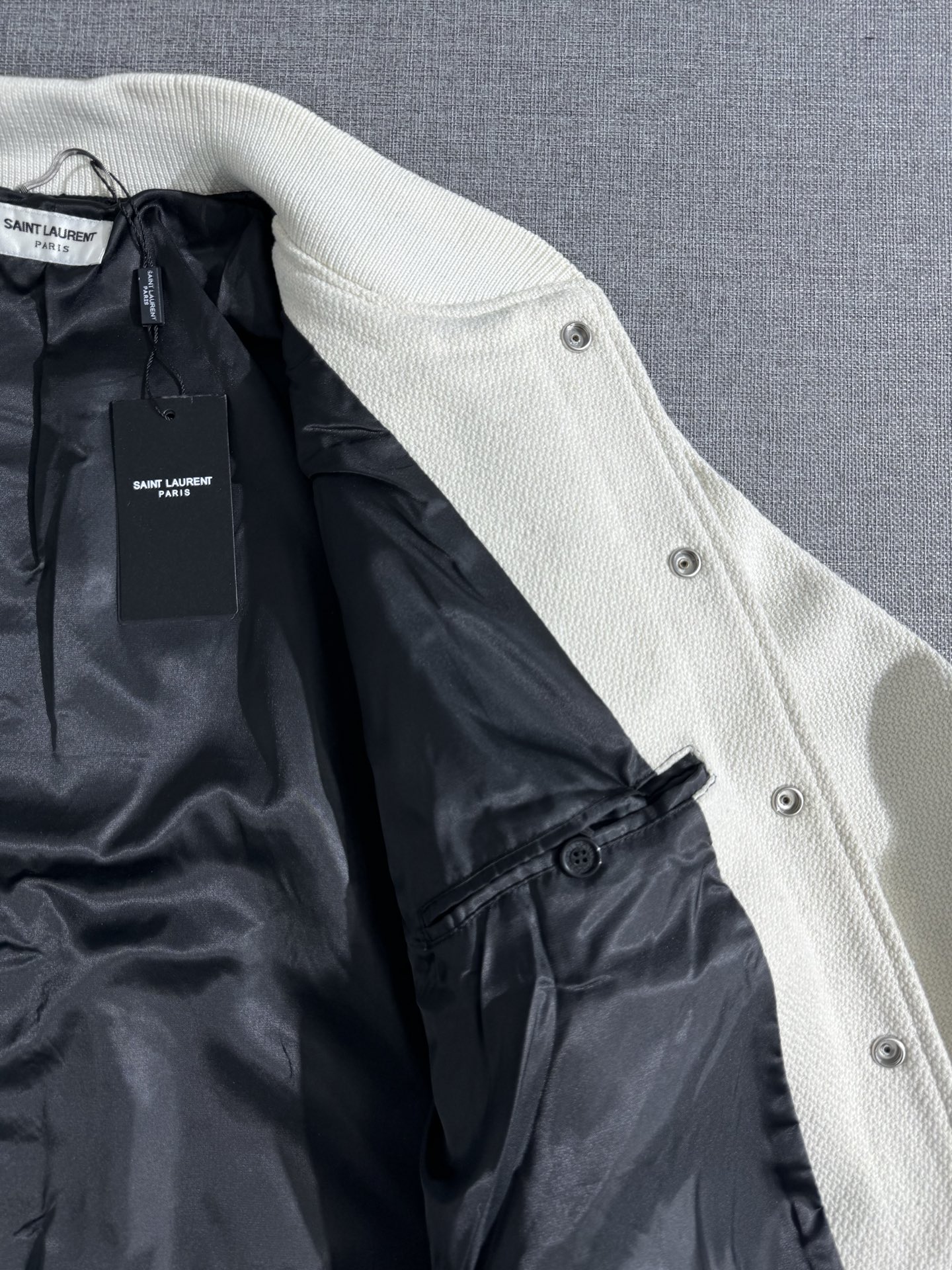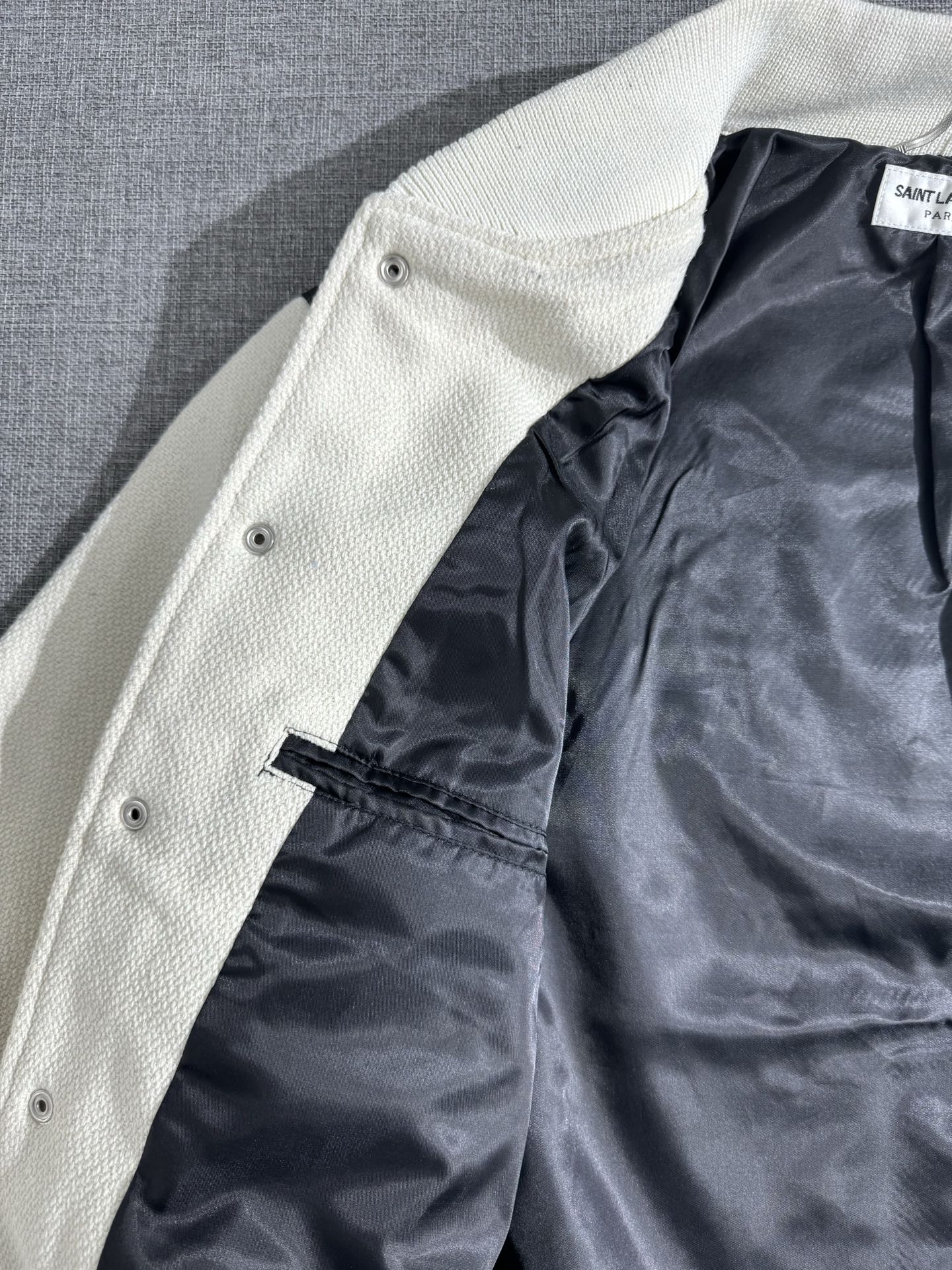 With its classic design and premium materials, this Yves Saint Laurent baseball jacket is a versatile piece that will elevate any outfit. Invest in timeless style and experience the luxury of Saint Laurent.