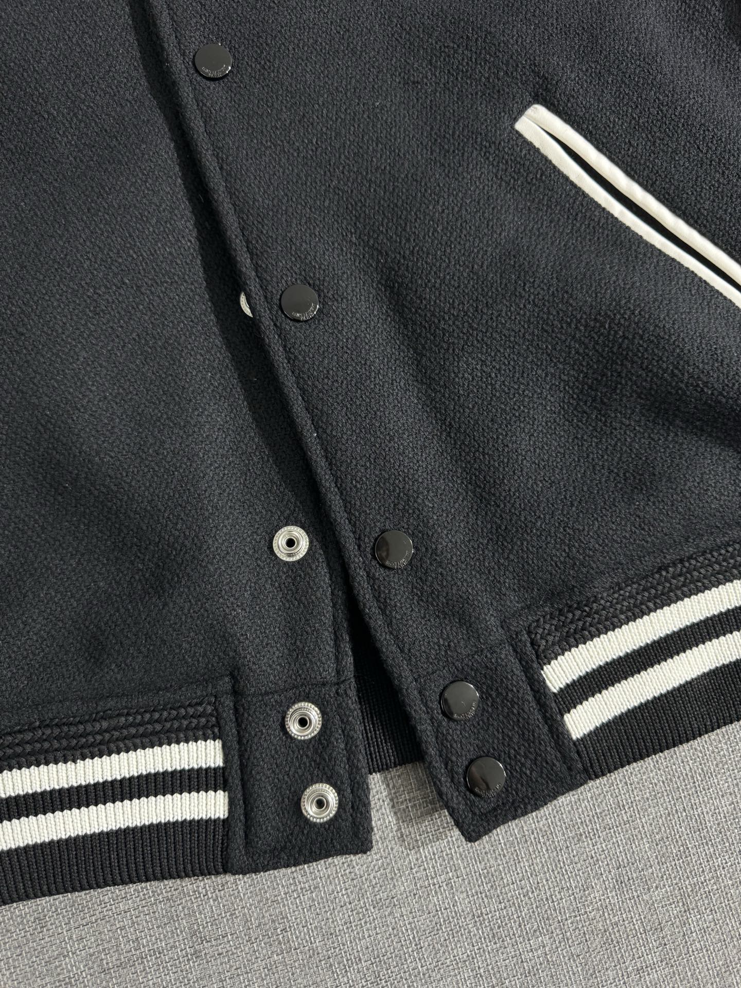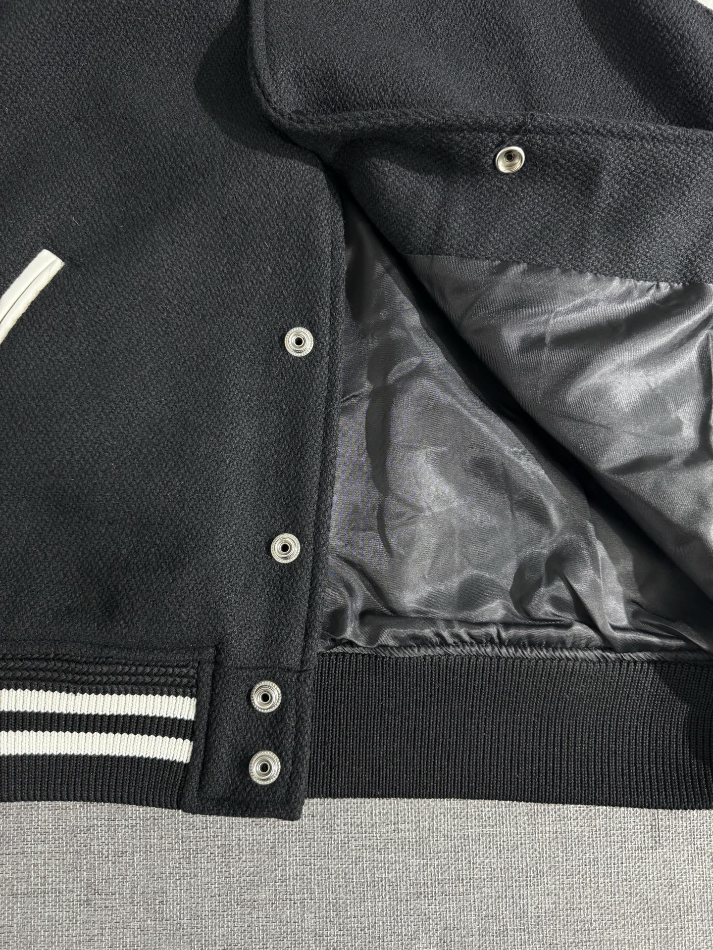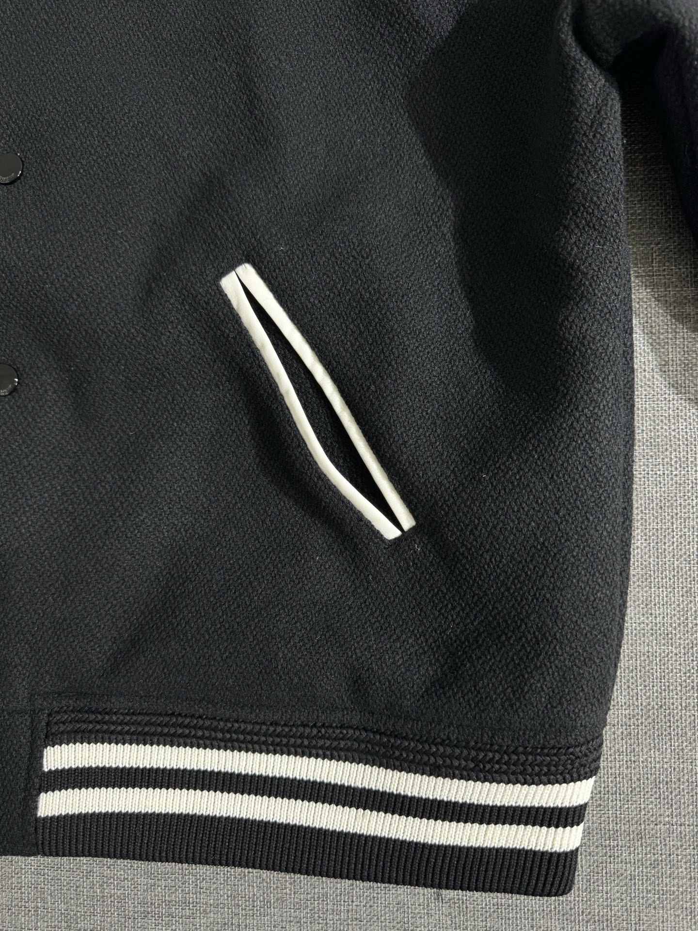 Tags: Designer Varsity Jacket, Leather Sleeve Jacket, Mens Fashion Outerwear, Saint Laurent Jacket, Wool Baseball Jacket