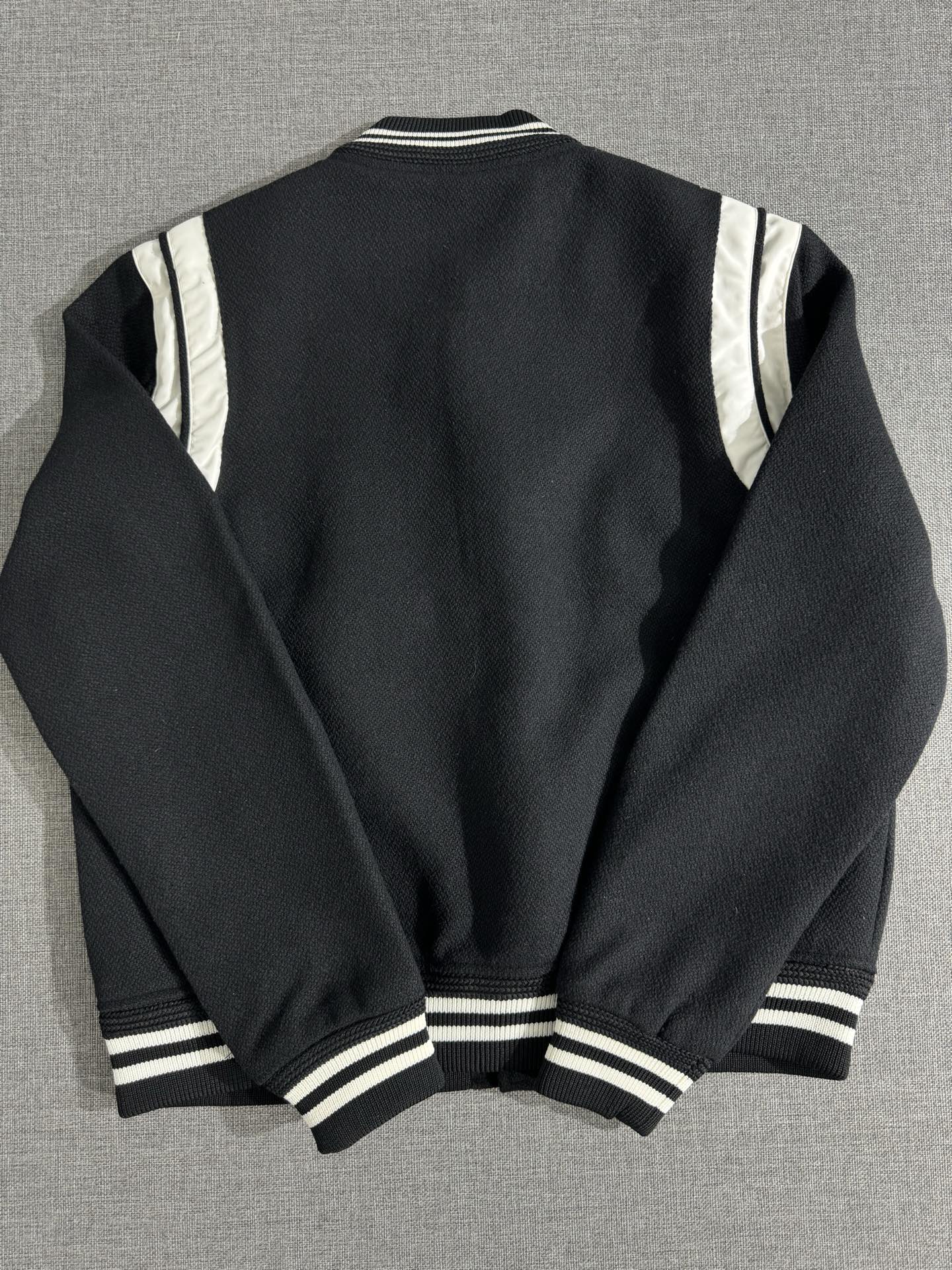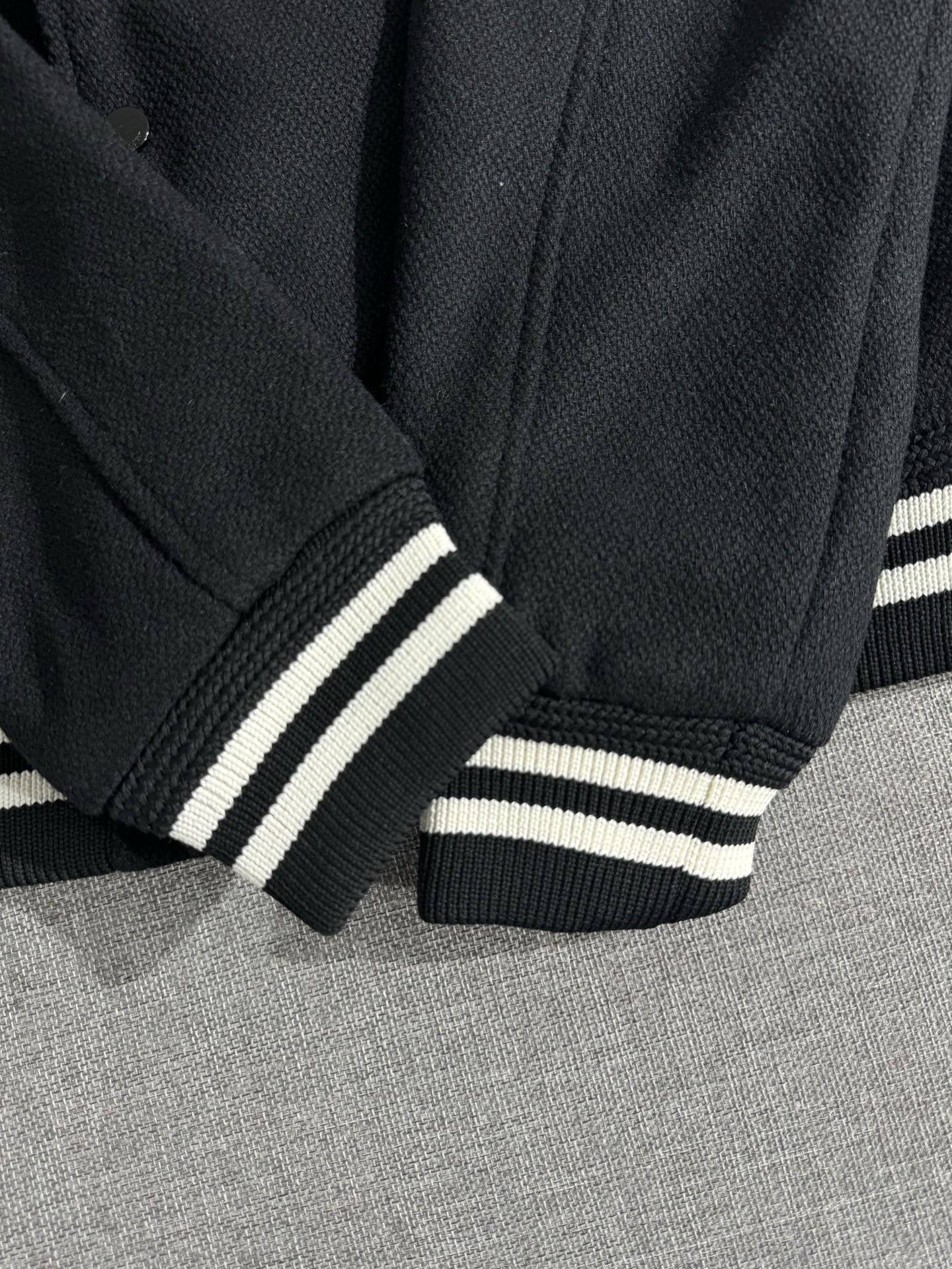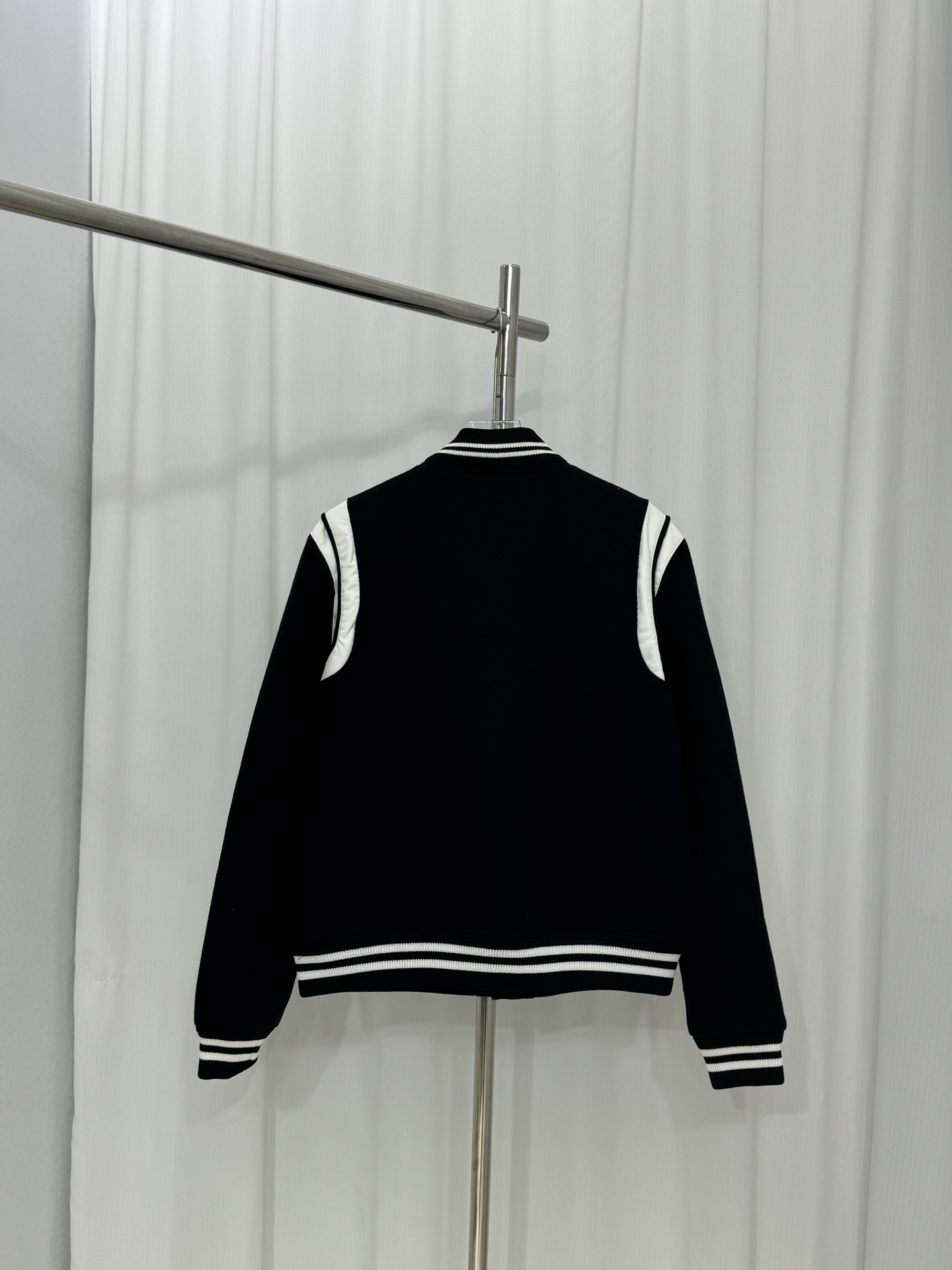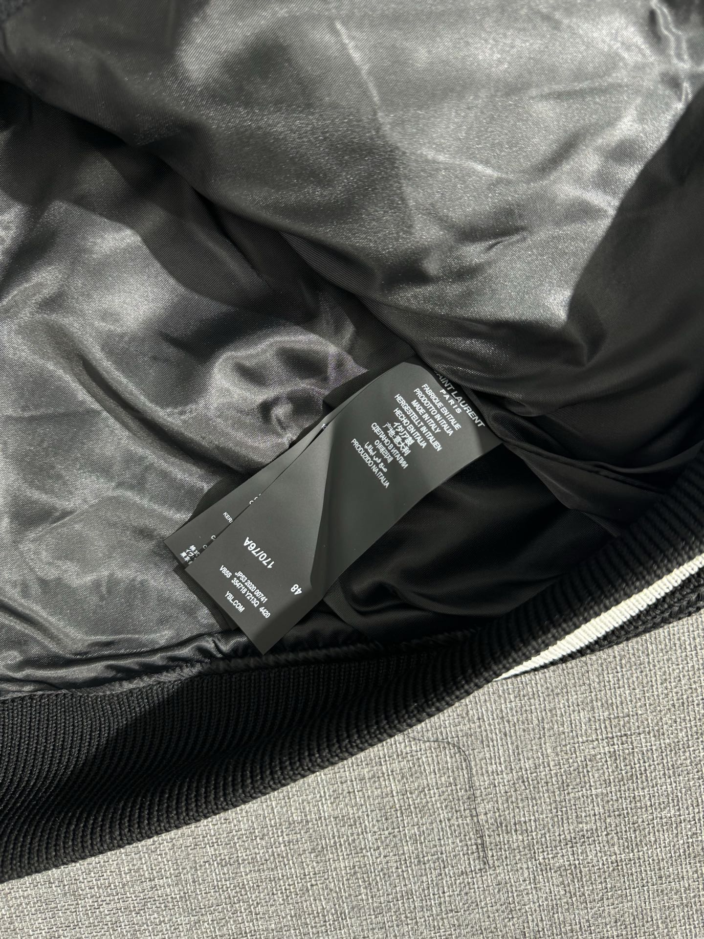 This Yves Saint Laurent baseball jacket is a classic piece that combines luxury materials with timeless design. Perfect for adding a touch of sophistication to any outfit.