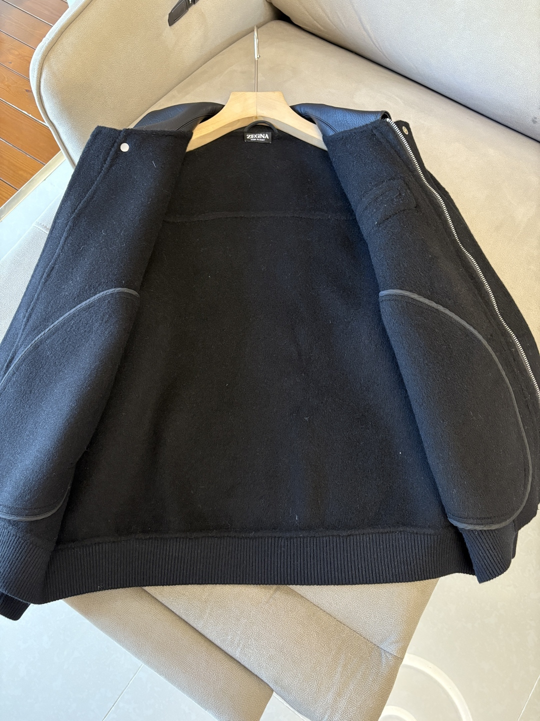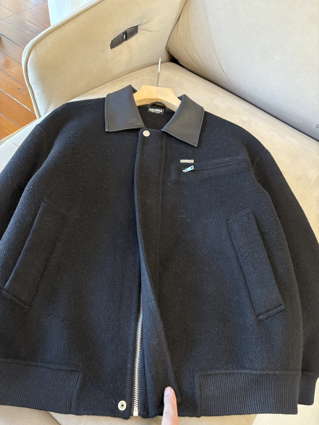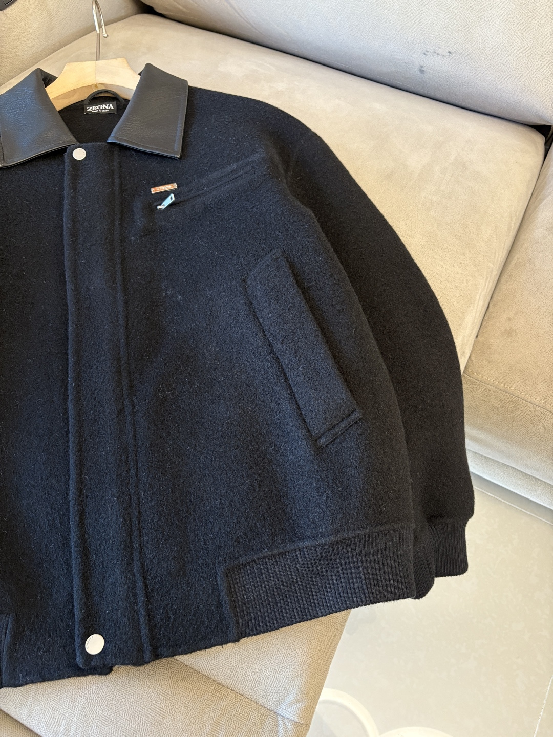 Tags: Button Front Jacket, Leather Collar Jacket, Modern Bomber Jacket, Winter Wool Coat, Wool Blend Jacket, Zegna Men's Jacket