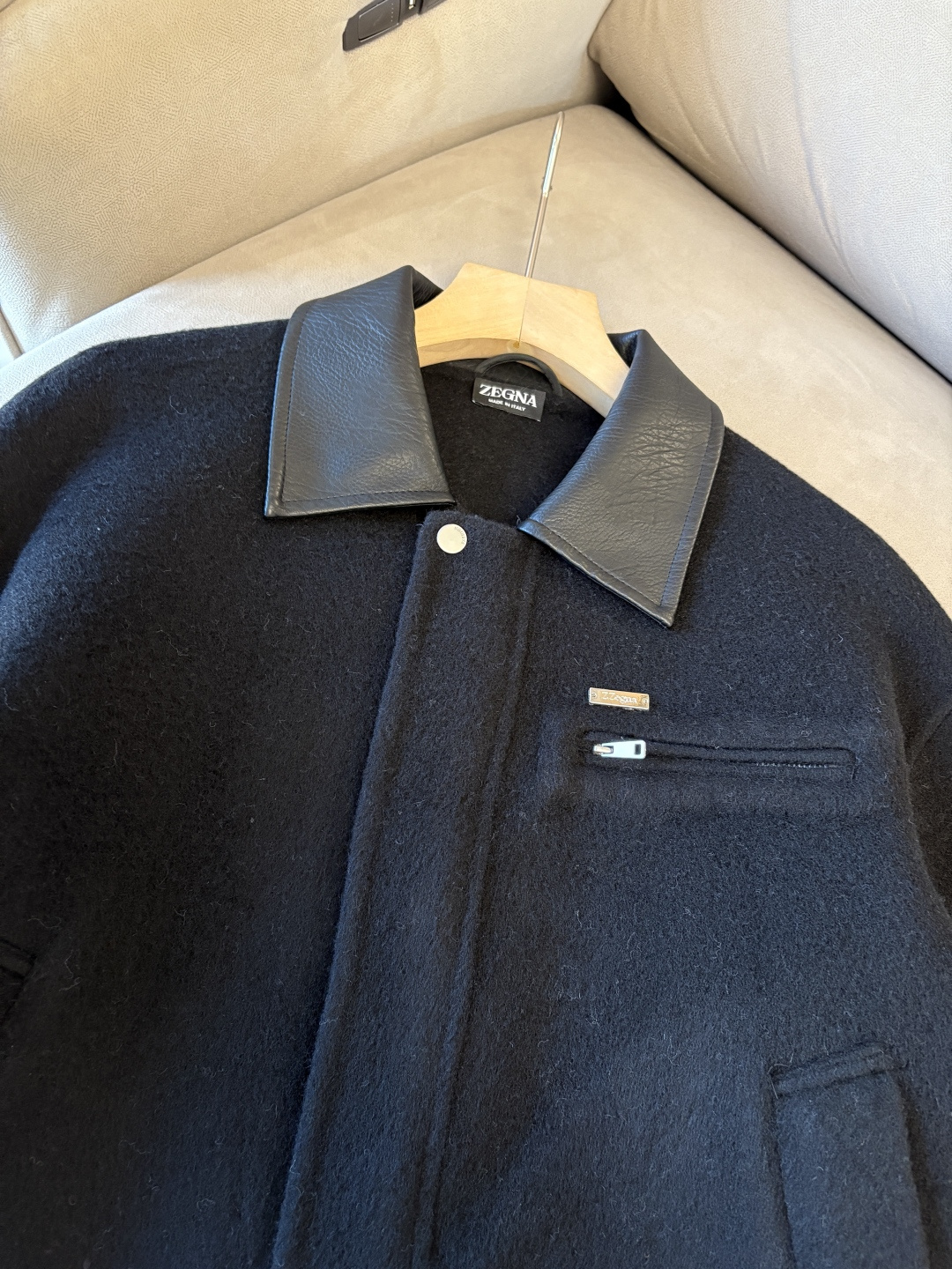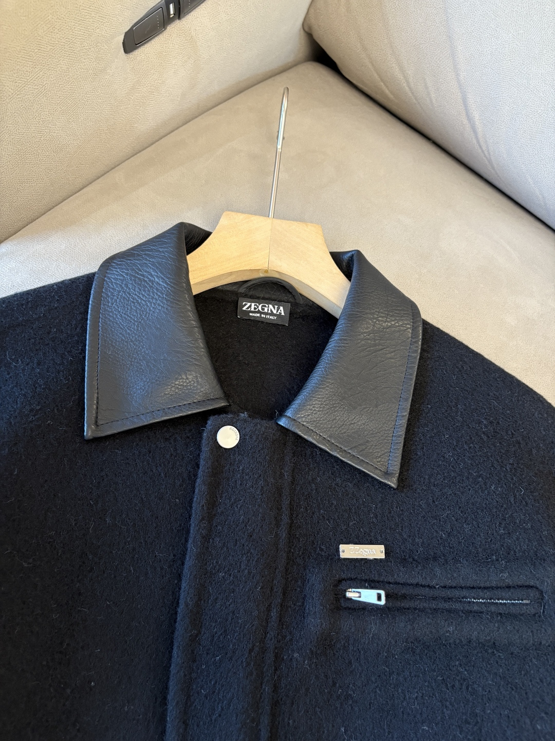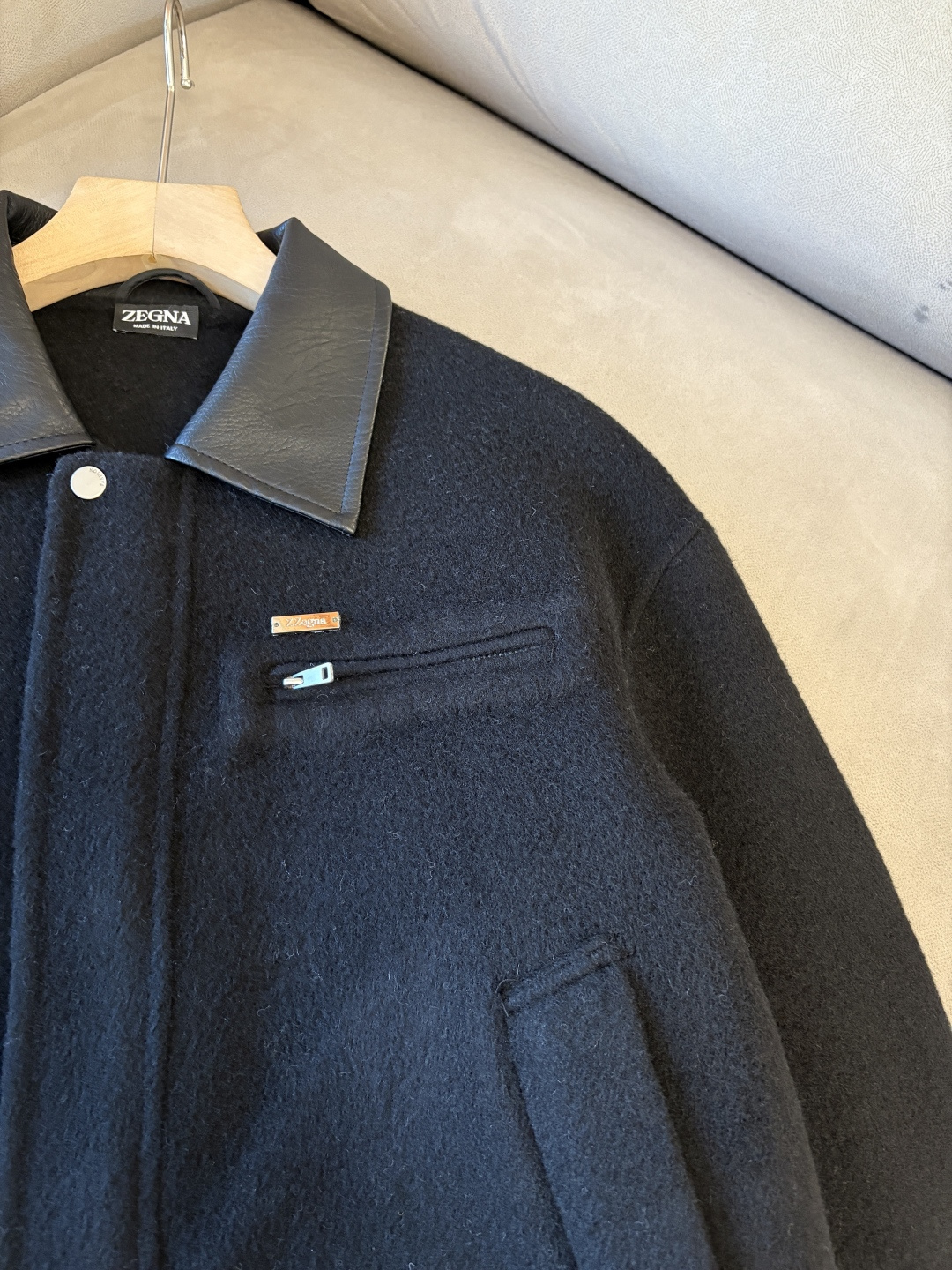 Zegna Wool-Blend Jacket with Leather Collar - Modern Warmth & Style