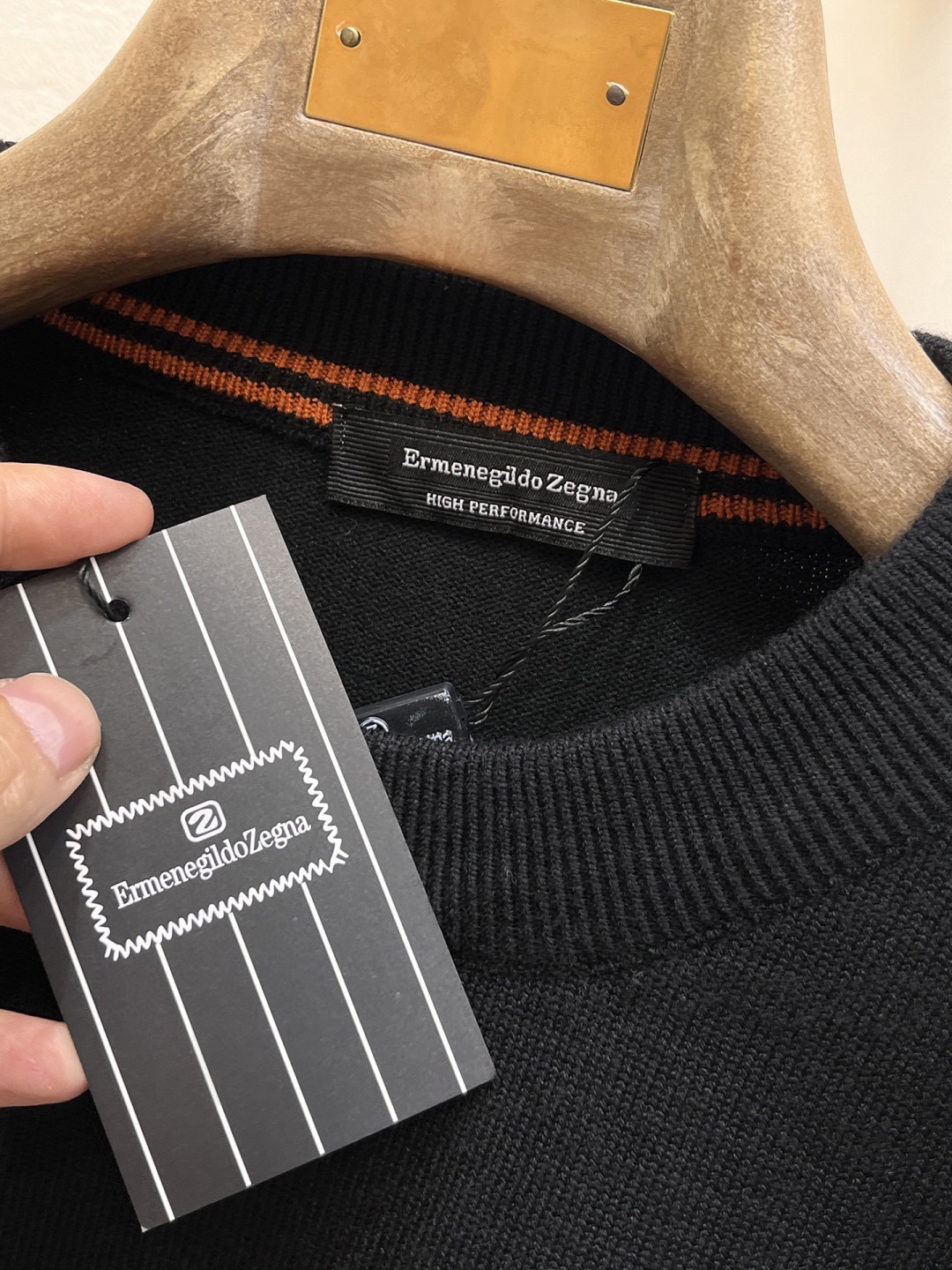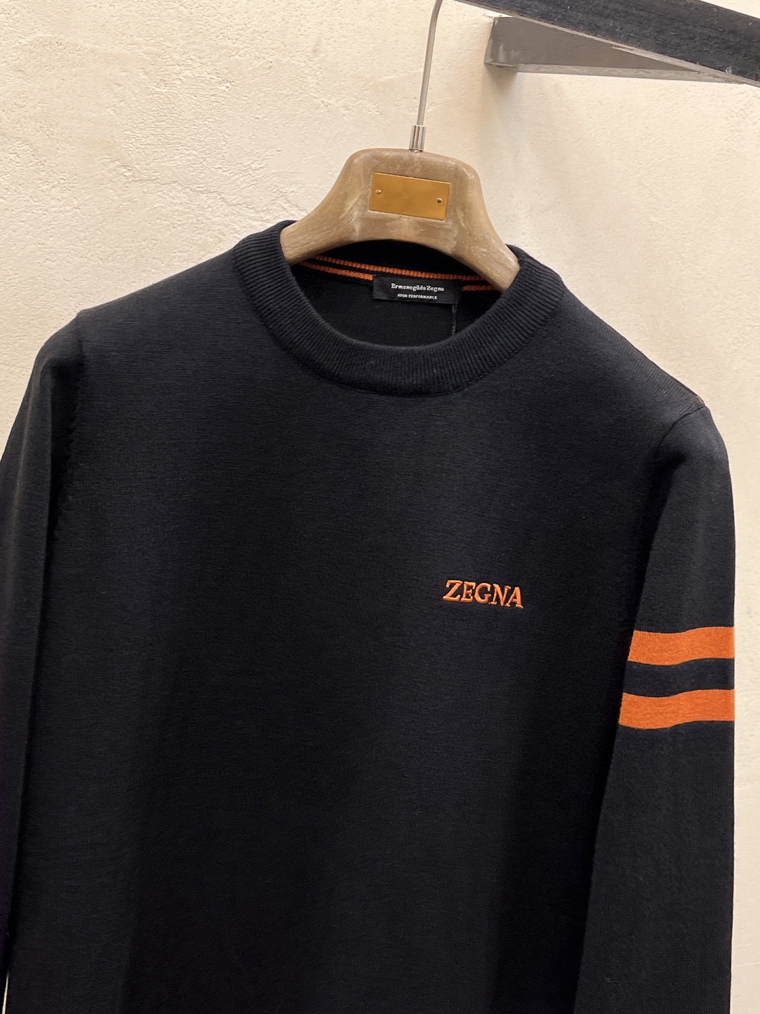 Tags: Crew Neck Sweater, Luxury Knitwear, Mens Designer Sweater, Slim Fit Wool Sweater, Striped Sleeve Sweater, Zegna Wool Sweater